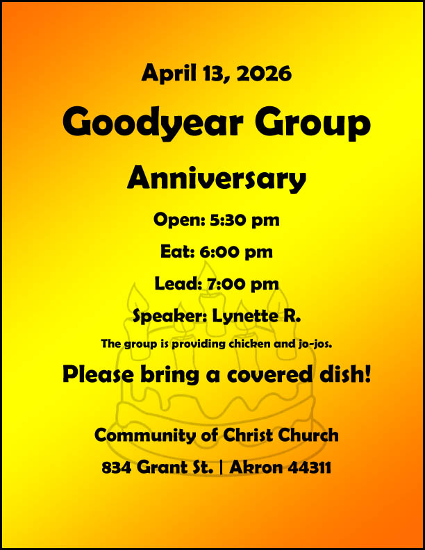 The Language of the Heart women’s meeting will be meeting at the Stow-Munroe Falls Library tonight because their normal location is closed. They will meet from 6:30 – 8:45 pm.