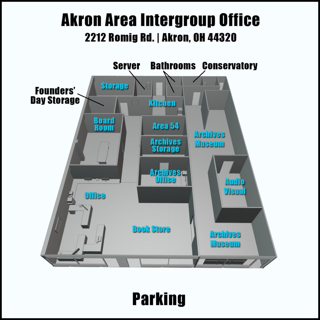 The Akron Area Intergroup Office is in the process of moving to a new location in Akron OH. Please keep us in your prayers as we navigate this complex process, and bookmark this page to keep up-to-date on all of the latest developments.
